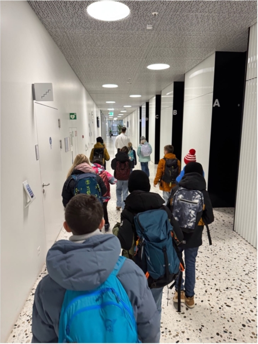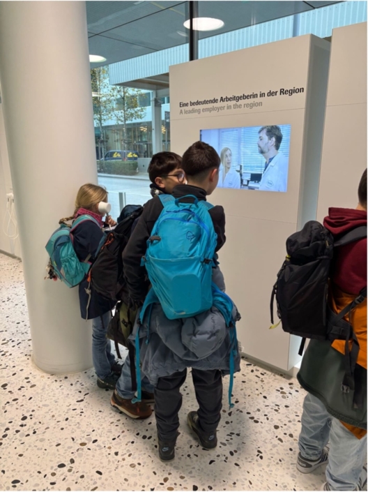 Auf der Reise nach Basel teilte sich unsere Klasse in 2 Gruppen. Die erste Gruppe spielte das Spiel “Werwölfeln”. Die zweite Gruppe redete und spielte nicht. Als wir in Basel angekommen sind wussten wir noch nicht was uns erwartet. Am Bahnhof SBB sind wir dann in den Bus gestiegen. Wir sind etwa 1 Stunde mit dem Zug und Bus gefahren. Bei der Station “Hoffmann-La-Roche” stiegen wir aus. Als wir dort angekommen sind, dachten wir, wir gehen auf einen Spielplatz oder so…aber wir gingen wirklich zur Firma Roche. Unsere Heilpädagogin hat uns vor dem riesigen Gebäude erzählt, dass wir bis ganz nach oben gehen dürfen. Wir sind zwar nicht in den höchsten Turm der Schweiz gegangen, das wäre der Bau 2, aber dafür durften wir ins zweihöchste Gebäude, in den Bau 1. Dieses hat 38 Stockwerke. Es war sehr toll, weil wir von dort oben bis auf Deutschland und Frankreich gesehen haben. Wir durften leider nicht raus auf die Dachterrasse. Es war trotzdem sehr cool. Anschliessend gingen wir nach unten ins Erdgeschoss. Da konnten wir noch ganz viel machen und ausprobieren. Wir durften zum Beispiel VR Brillen anziehen und so übers Roche-Gelände laufen.