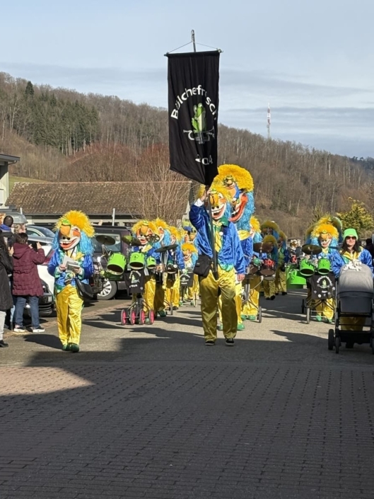 Der farbenfrohe Fasnachtsumzug durch Zunzgen war begleitet von freundlichem Sonnenschein und strahlenden Gesichtern. Für den musikalischen Groove möchten wir den Bölchefrösch, den Windläfurzer und den Wurlitzer einen besonderen Dank aussprechen. Natürlich durfte auch der Besenwagen der Line-Dance-Company nicht fehlen. Zum krönenden Abschluss kamen die Zuschauerinnen und Zuschauer auf dem Pausenplatz in den Genuss einer bombastischen Guggen-Einlage!