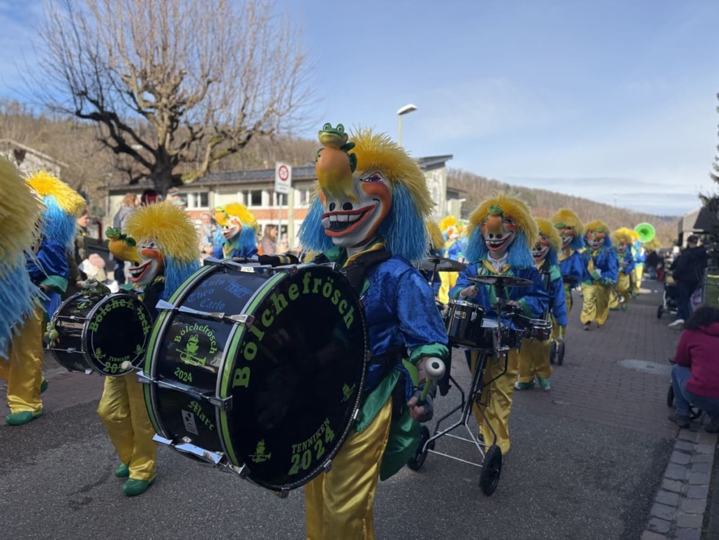 Der farbenfrohe Fasnachtsumzug durch Zunzgen war begleitet von freundlichem Sonnenschein und strahlenden Gesichtern. Für den musikalischen Groove möchten wir den Bölchefrösch, den Windläfurzer und den Wurlitzer einen besonderen Dank aussprechen. Natürlich durfte auch der Besenwagen der Line-Dance-Company nicht fehlen. Zum krönenden Abschluss kamen die Zuschauerinnen und Zuschauer auf dem Pausenplatz in den Genuss einer bombastischen Guggen-Einlage!